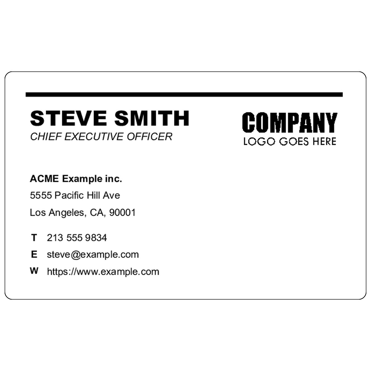 | Professional horizontal design with split branding, clear contact details, and an address layout for exchange. | ||