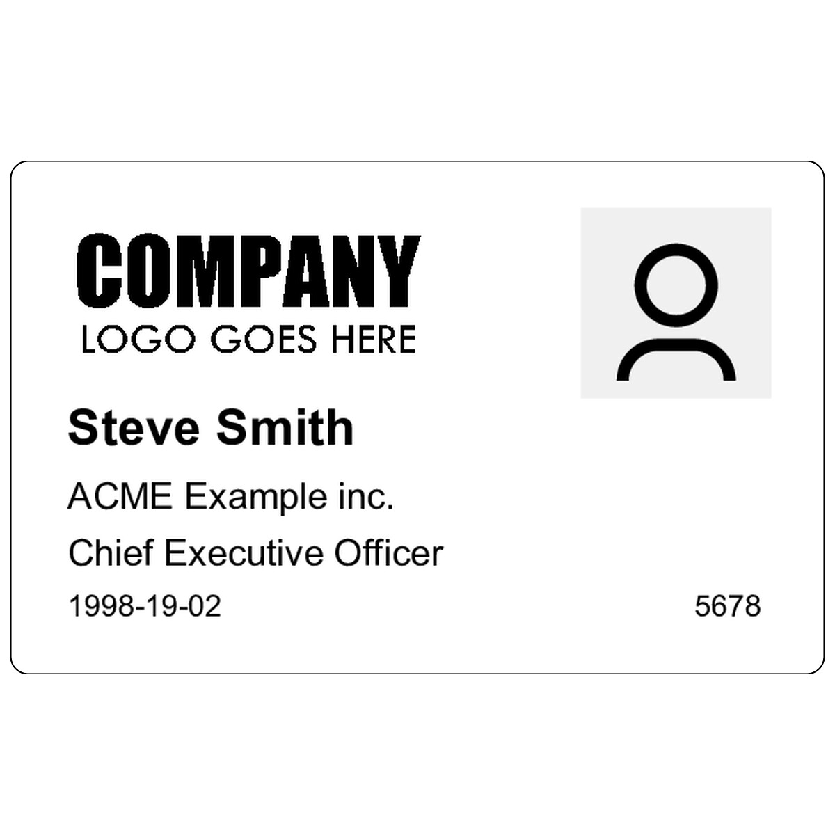 | This layout has one background image, one photo ID, one text, four dynamic texts, and one image you can print on the badge. | ||