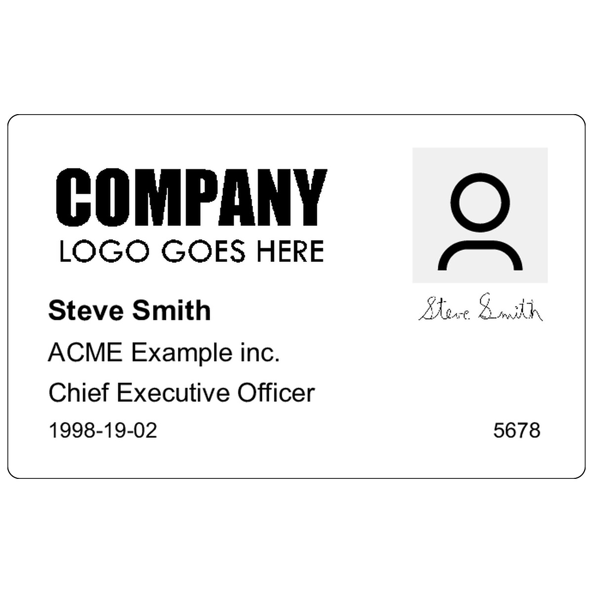 | Clean horizontal design with a logo area, photo placeholder, signature panel, and clear role details. | ||