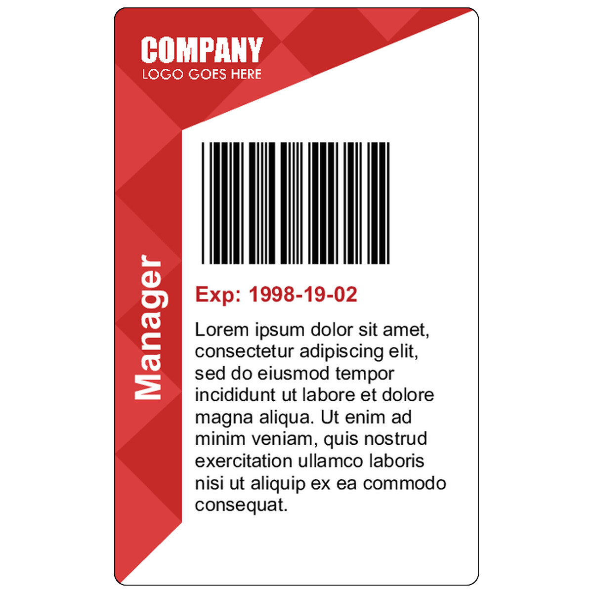 | Professional vertical design for back layout with role emphasis, barcode, expiry date, and text block. | ||