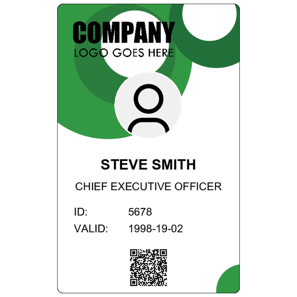 | This layout has one background image, one photo ID, three texts, three dynamic texts, one QR Code, and one image you can print on the badge. | ||