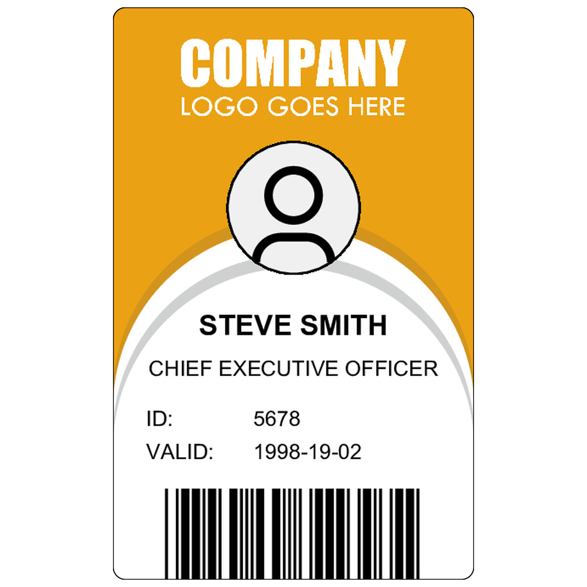 | This layout has one background image, one photo ID, three texts, three dynamic texts, one barcode, and one image you can print on the badge. | ||