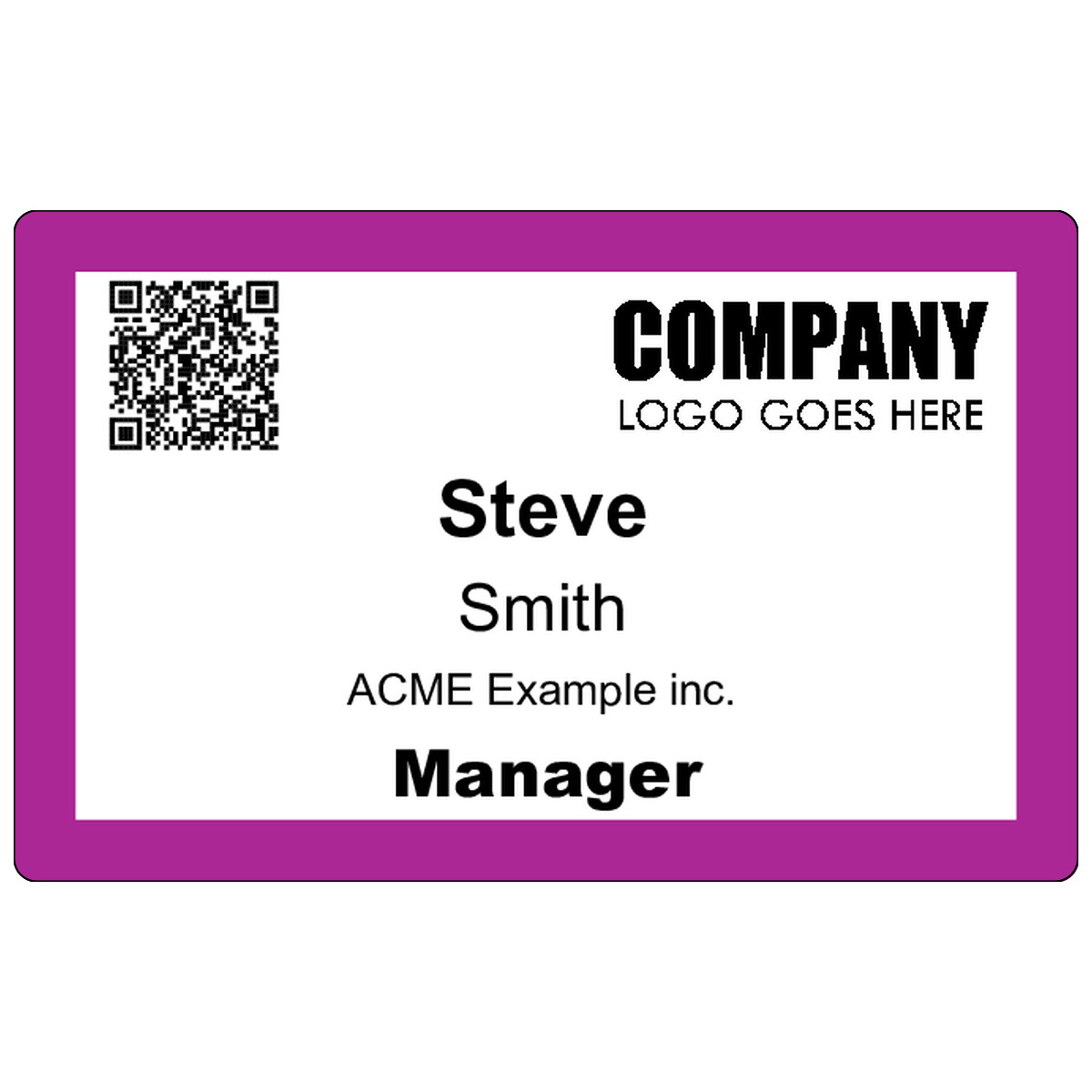 | This layout has one background image, four dynamic texts, one QR Code, and one image you can print on the badge, and it's using color-coding. | ||