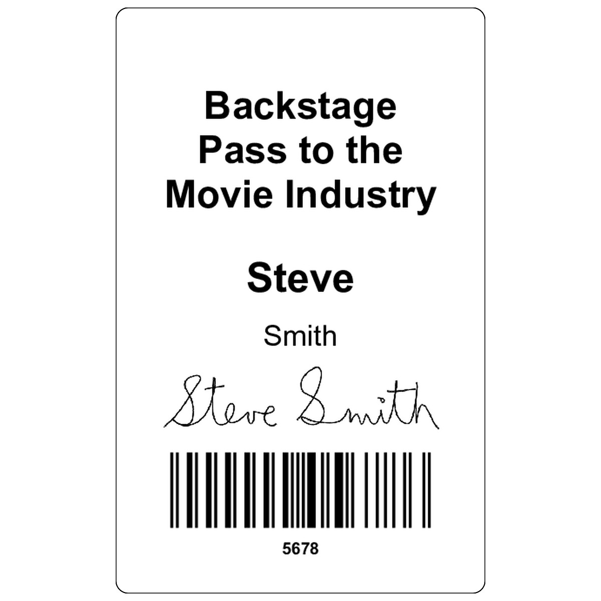 | Clean vertical design with a title header, name display, signature area, and barcode for access control. | ||