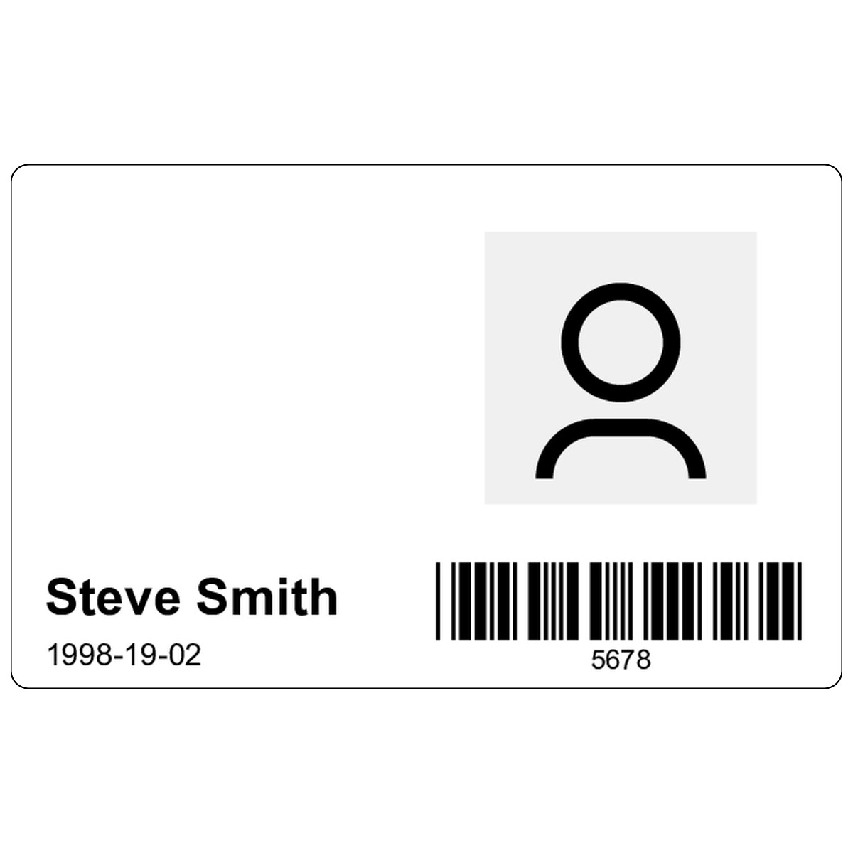 | Simple horizontal design with a photo id, name, expiry date, and barcode, for use over custom backgrounds. | ||