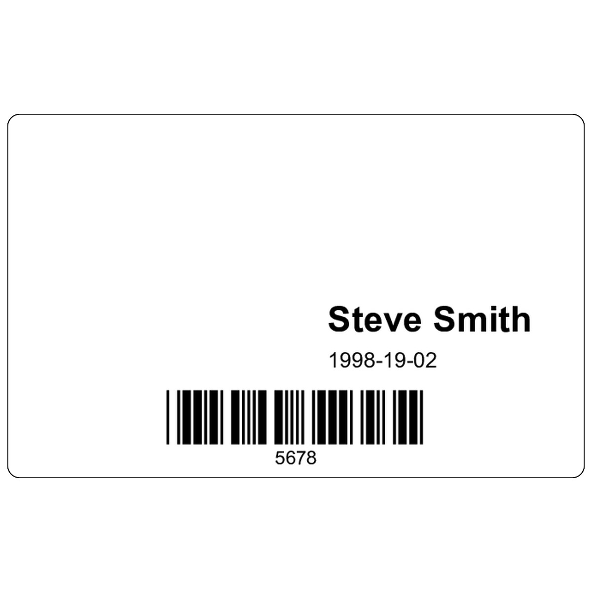 | Simple horizontal design with a name, expiry date, and barcode, intended for use over custom backgrounds. | ||