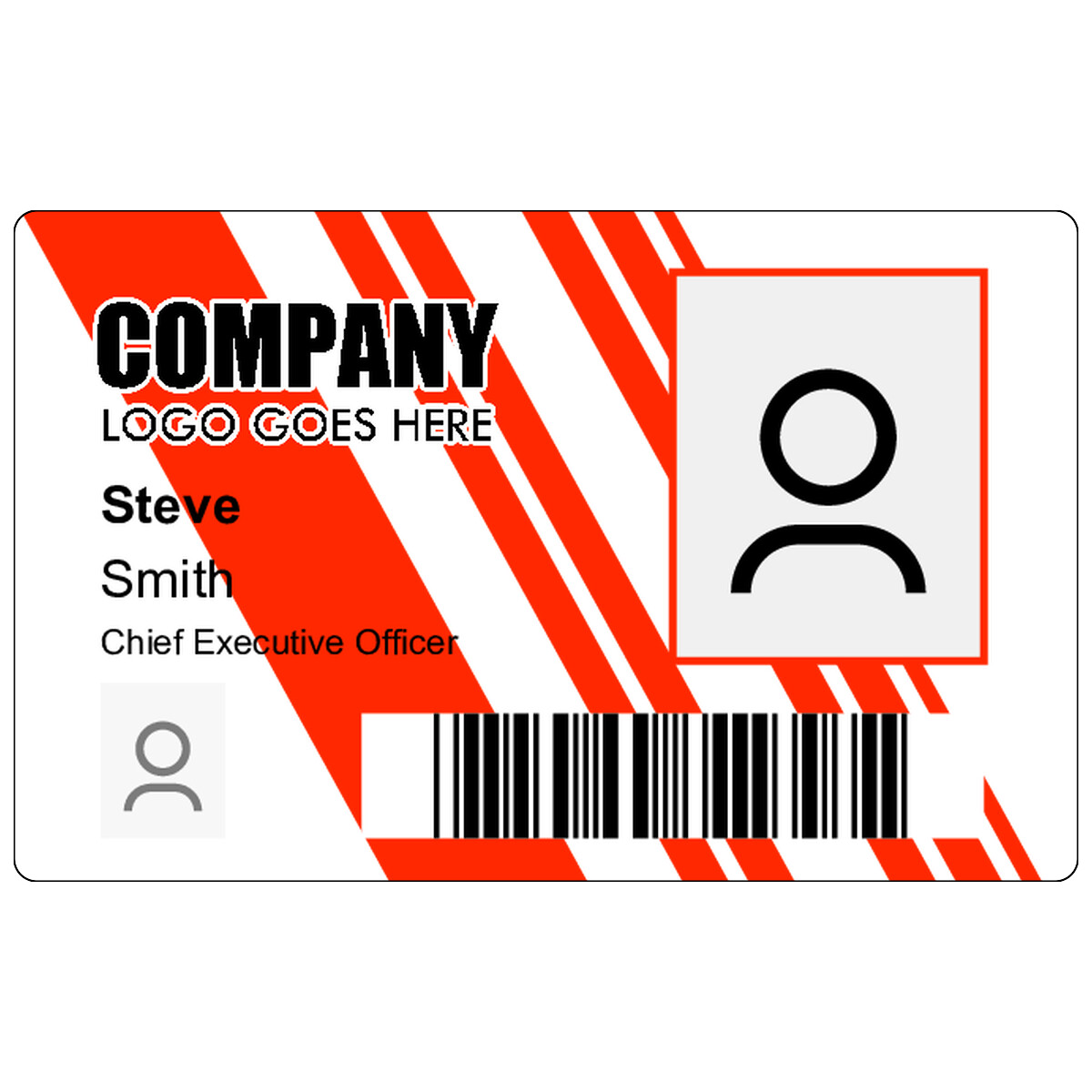 | Modern horizontal design with a bold SVG background, photo area, barcode, and high-contrast identity layout. | ||