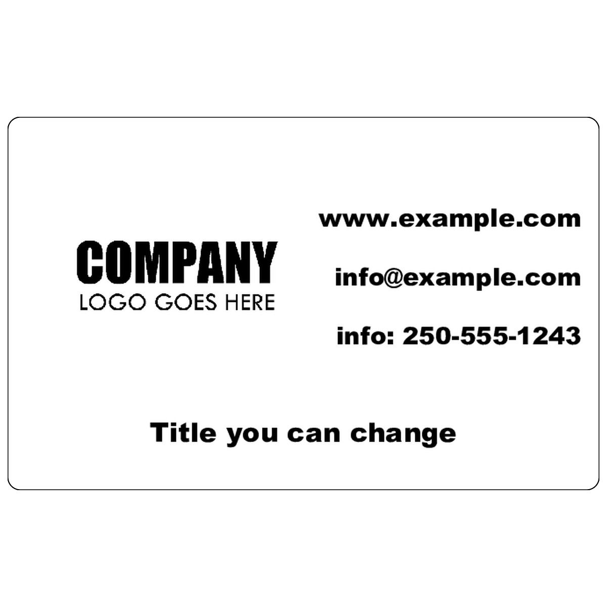 | Simple horizontal design with a logo area, editable title text, and basic contact information. | ||