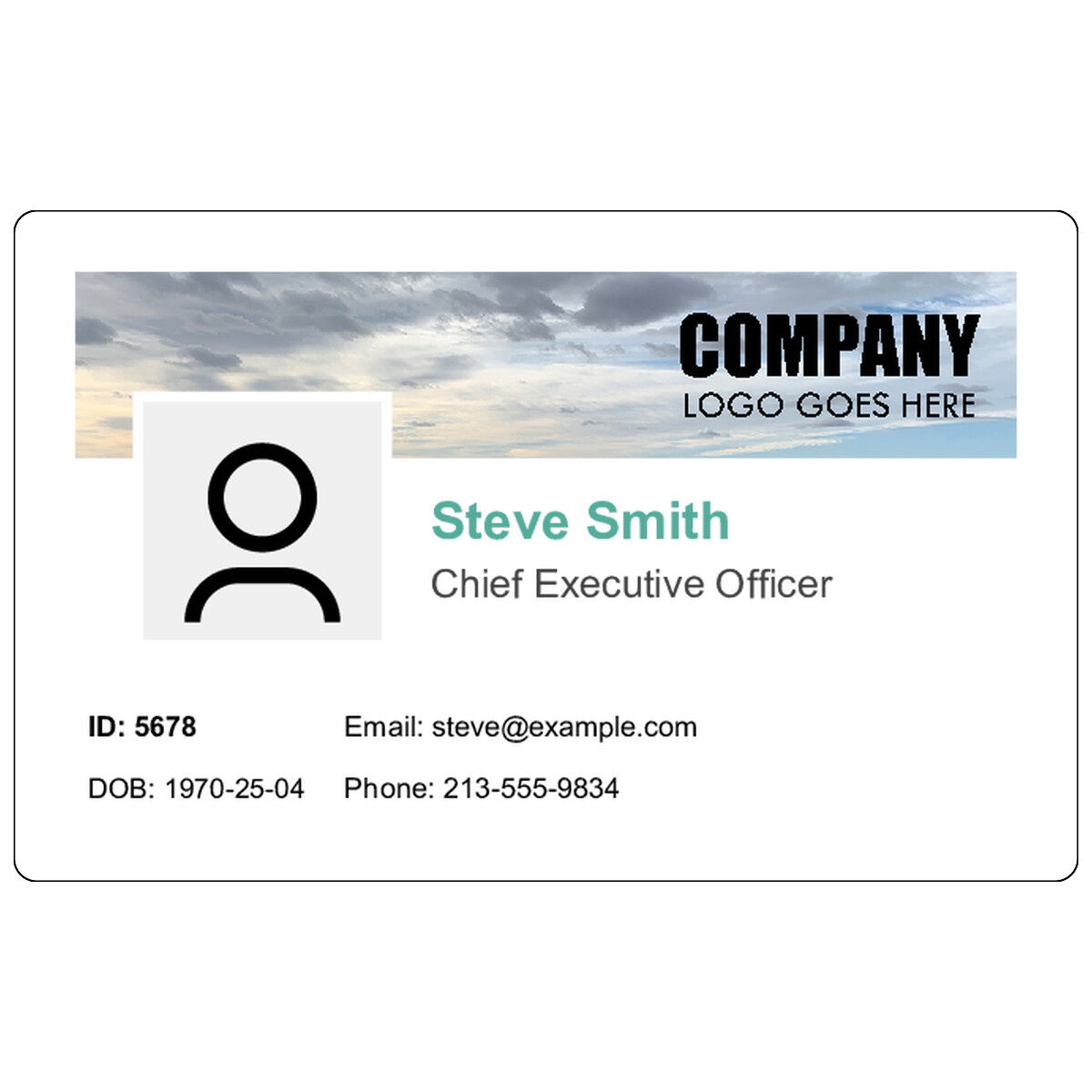 | Modern horizontal design with a customizable image header, photo area, identity details, and contact fields. | ||