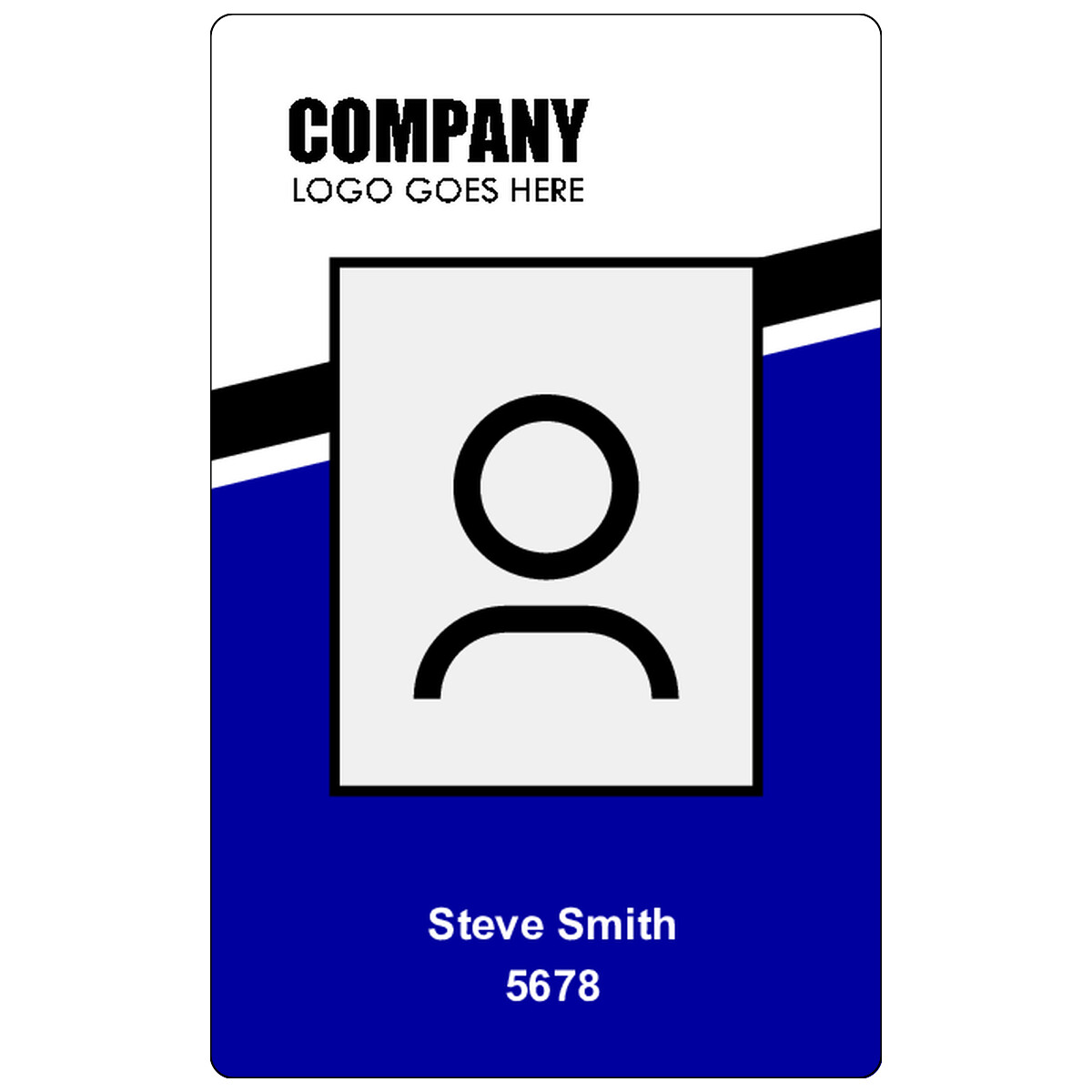 | This layout has one background image, one photo ID, two dynamic texts, and one image you can print on the badge. | ||
