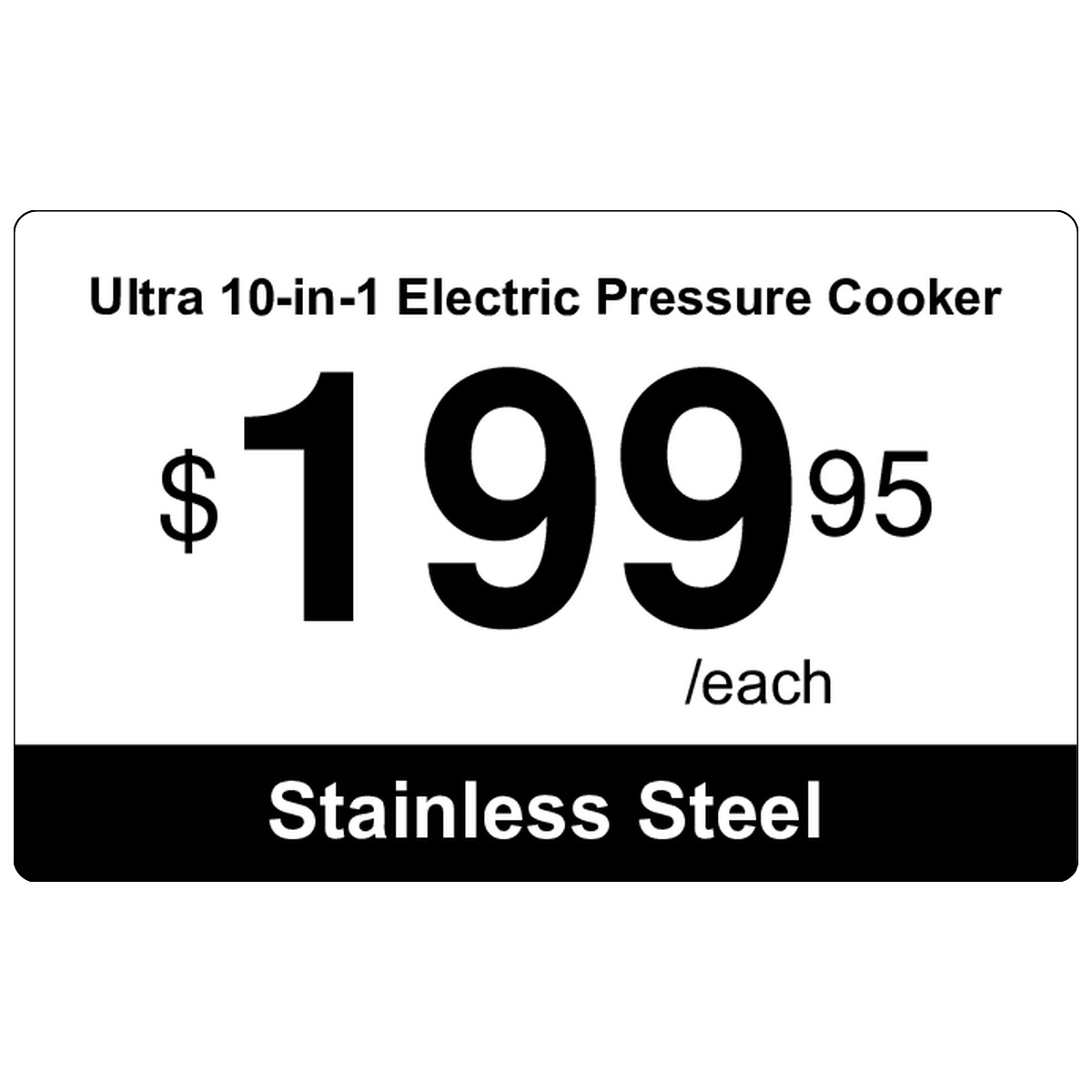 | Horizontal price tag with a high-contrast bottom banner, product name, and large pricing. | ||