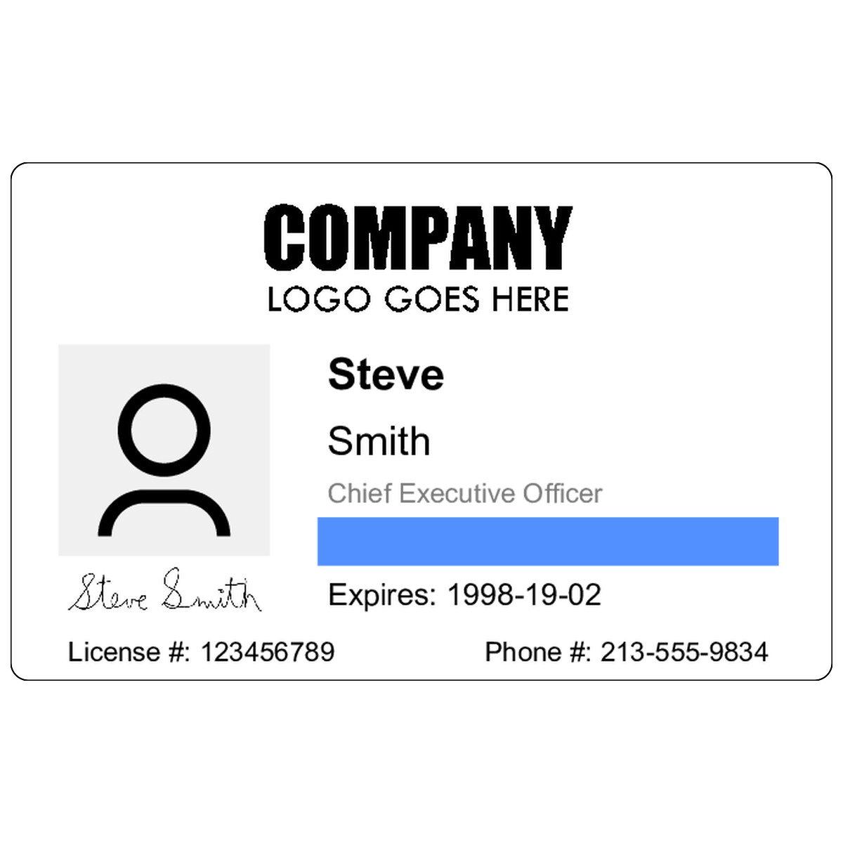 | Clean horizontal design with a photo area, dynamic color code bar, expiry date, and key identity fields. | ||